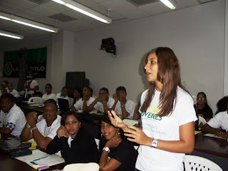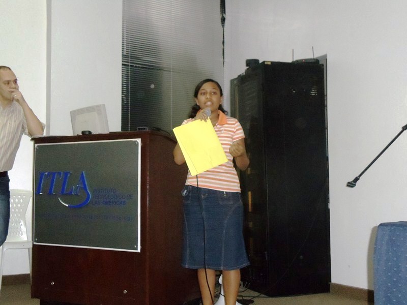 Elinany Bueno de Santo Domingo presentando el Conferencista