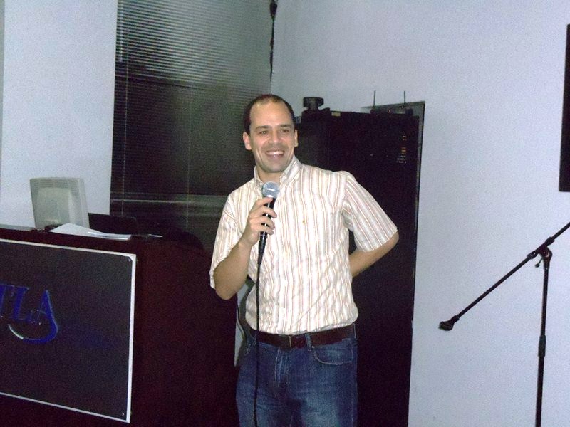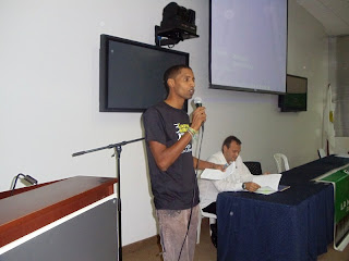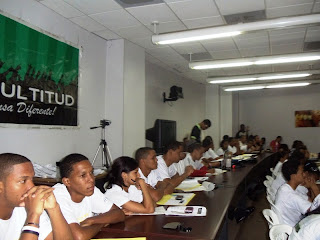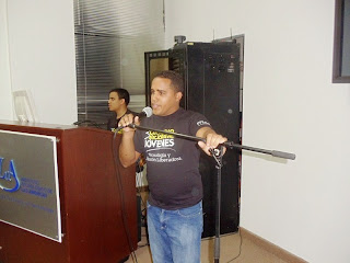 Yordani Geraldino, de La Multitud Bonao presenta al Conferencista.