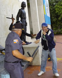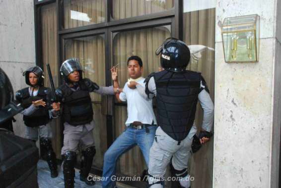 Los jóvenes llevaron una soga como símbolo de la esclavitud que se vive en el país ante el inicio de una dictadura. De inmediato, los agentes evitaron el acto con sus macanas. Hecmilio Galván de 24 años fue herido en un brazo por varios macanazos, Rafael Encarnación, de 62 años, fue golpeado de forma brutal; tenía tanto su nariz como el brazo herido. Mientras Gina Goico de 21 años fue golpeada y Narciso Isa Conde quien fue a apoyar a los jóvenes obtuvo una fractura de costilla mientras se sentaba en solidaridad con los jóvenes secuestrados.