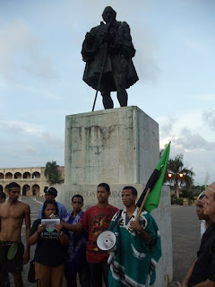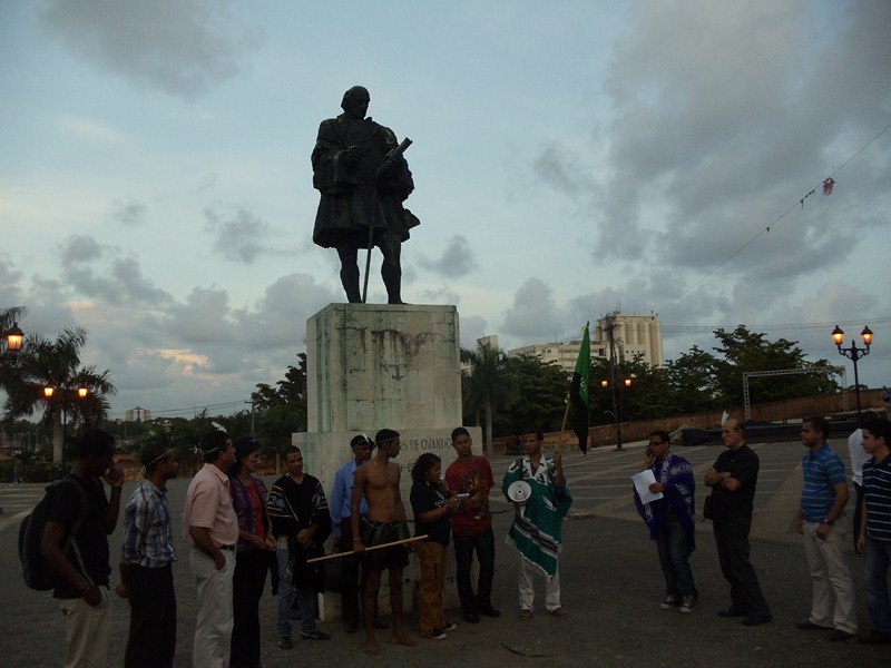 Santo Domingo-En un acto simbólico, el movimiento juvenil La Multitud exigió formalmente la sustitución de la estatua de Nicolás de Ovando ubicada en la plaza España, de la Zona Colonial de esta ciudad, para en su lugar colocar la del Cacique rebelde Caonabo, como primer paso hacia la reivindicación de la memoria histórica de nuestro pueblo.