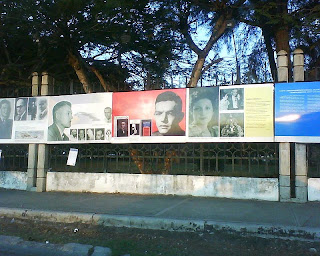 Se acaba el documental y los muchachos comienzan a montar el evento…La bandera nacional, las flores, la bandera de La Multitud…