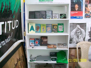 En poco tiempo ya el Stand lucía así, repleto de libros y materiales.