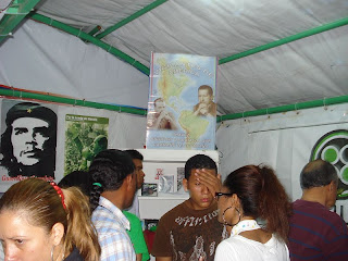 El Stand se montó rapidamente, en una noche ya estaba preparado... Aqui se ven los momentos en que colocabamos los afiches (todos trabajando, menos Michael)