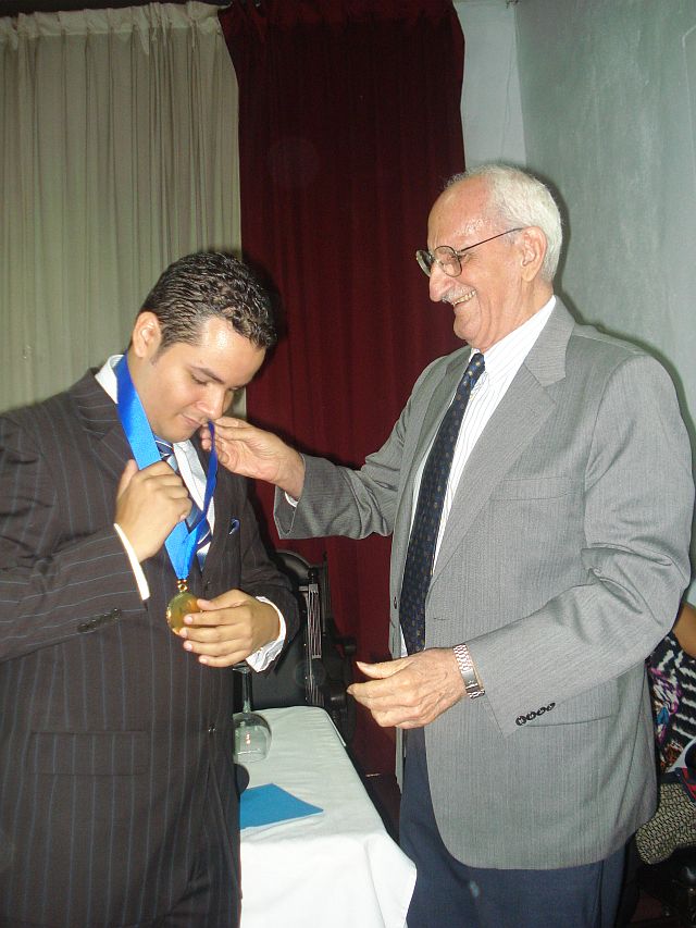 MSG impone la medalla a Hecmilio Galván por los esfuerzos durante esta conmemoración.