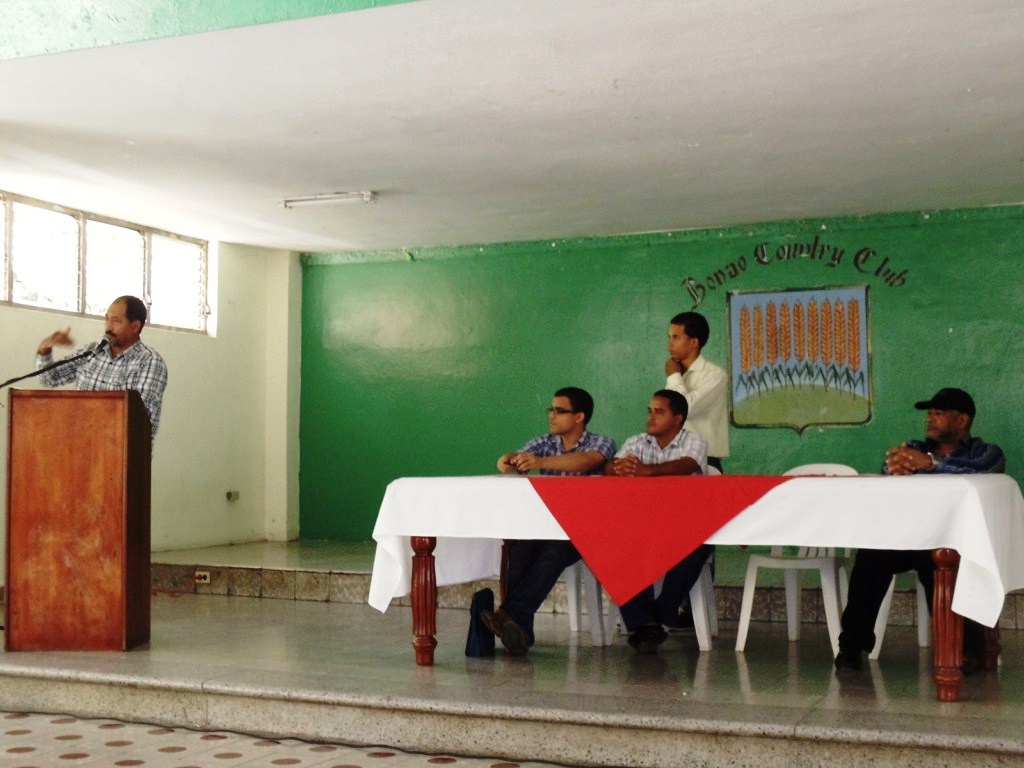 En este encuentro, que tuvo el apoyo del Comité contra la Megaminería de Bonao, inició pasadas las 10 de la mañana en el Country Club de esta comunidad, e hicieron uso de la palabra el Sr. Esteban Polanco (El Mellizo) líder de la Federación De Campesinos Hacia El Progreso y el Profesor Jiménez Abad, ambos figuras emblemáticas de la ciudad de Bonao, por su tradición de lucha por la preservación de los recursos naturales. Quienes hablaron de lo pernicioso que es para la naturaleza y el ser humano, el uso de cianuro, que es el instrumento principal para la extracción del oro, en lo que se conoce como la minería a cielo abierto. Como también recordaron la victoria de los campesinos de Blanco contra la concesión la Hispaniola en los 90, ejemplo que llamaron a emular. Estuvieron presentes también los señores Edelvis García y El Chino, importantes luchadores de la provincia, entre otros.