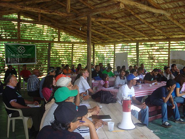 Alrededor de un centenar de personas, en su mayoría jóvenes se reunieron en las montañas de Hoyo del Pino, en la Provincia Monseñor Nouel, para compartir experiencias sobre las movilizaciones campesinas en defensa de los recursos naturales y frente al proyecto de explotación minera en la región del Alto Río Yuna desarrolladas a finales de los noventa del siglo pasado.